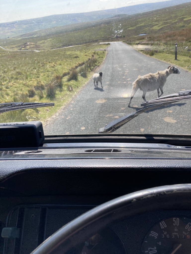 Mostly single track, blind steep hills, blind corners, hairpins and sheep.  The sheep had the same sort of attitude as the lycra clad cyclists in Richmond park and the students and tourists in Durham.  I was a nuisance, this is their road, and they weren’t keen on getting out of my way!  Molly spent quite a bit of time in 2nd gear, occasionally needing to go down to 1st for some hills as I gripped the steering wheel tightly.