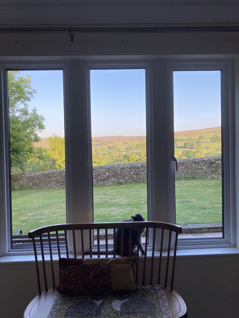 After a cuppa in the garden, Caroline took me in her car on a whistle stop tour of the 4 churches of which she is vicar.  Her parish covers the length of Swaledale, and is a huge 250 square mile area! My parish, by contrast, you can cycle through in 10mins. Caroline put to good use her off road driving course skills as we hurtled around the country lanes a lot faster than Molly and I ever dared.  It was great to see the churches, each with it’s own unique character and amazing view. Lovely to hear what God is doing in such a rural setting, and the amazing imagination that she has used to extend the ministry there. After dinner and  a couple of glasses of wine it was time to set Molly up for the night and head off to sleep, must have a look at that rattle in the morning.