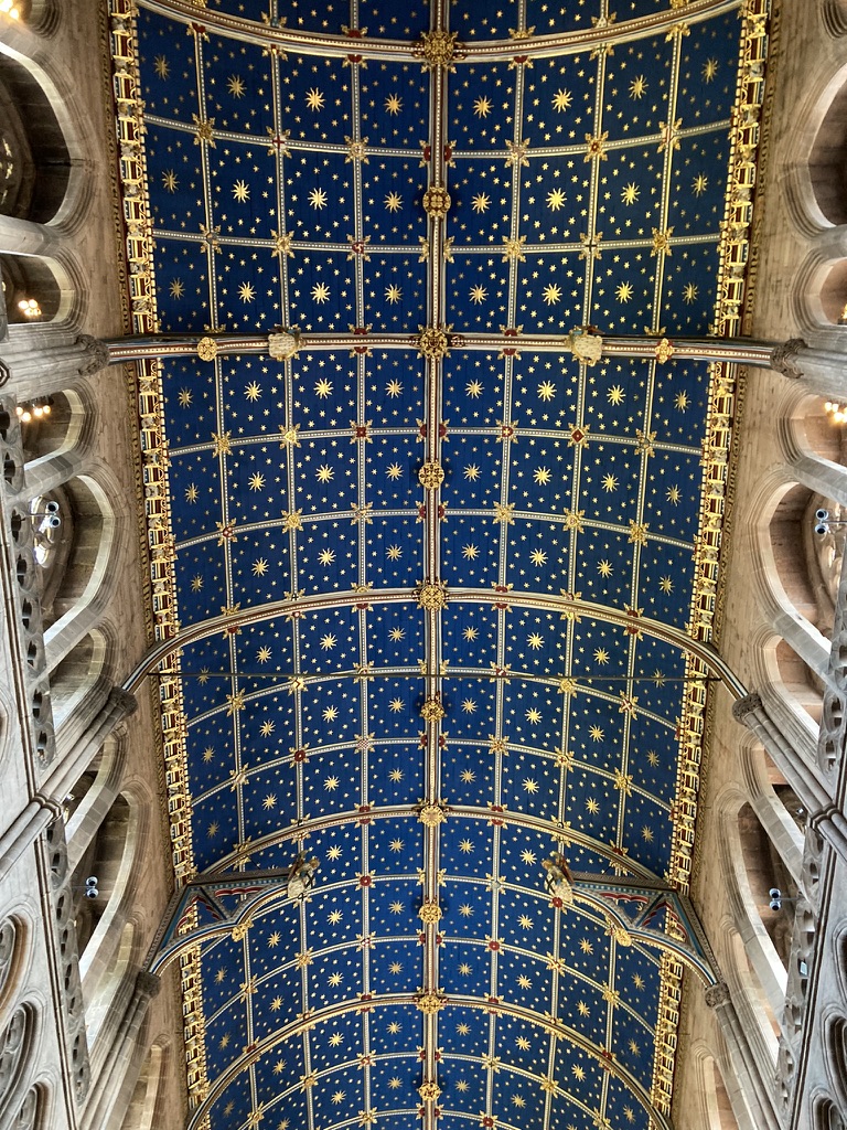 You are encouraged to explore the building through a sensory prayer walk.  One part , in the choir, suggests you lie down on the rug and ‘look at the Star-light ceiling…In your mind’s eye travel the vastness of space and time…’. Do it! It’s amazing!