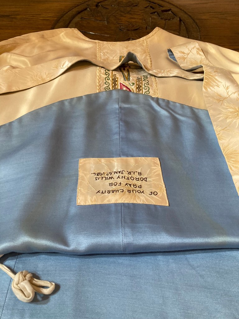 I really enjoyed this, Dave. I would love to have seen the steward’s face as she prevented you going in the ‘posh seats’ . The ribbons & the bluebottle were hilarious! I’m with you, Dorothy made a beautiful chasuble (I had no idea that’s what it’s called). Keep writing!! Hope Molly’s ok. x