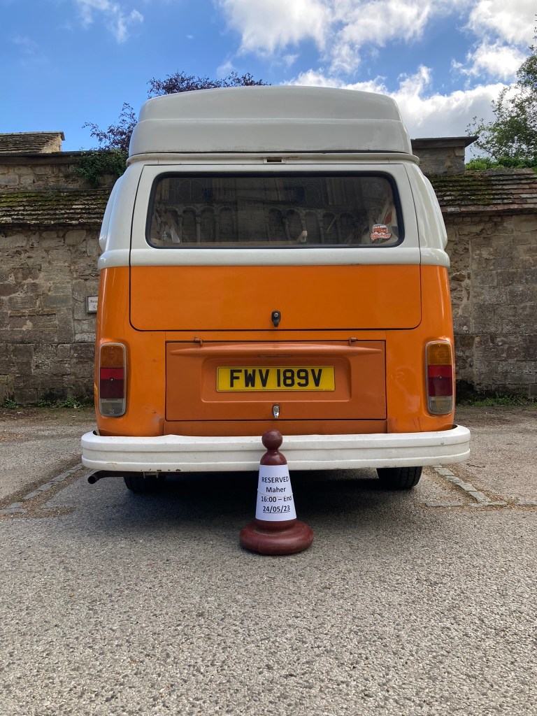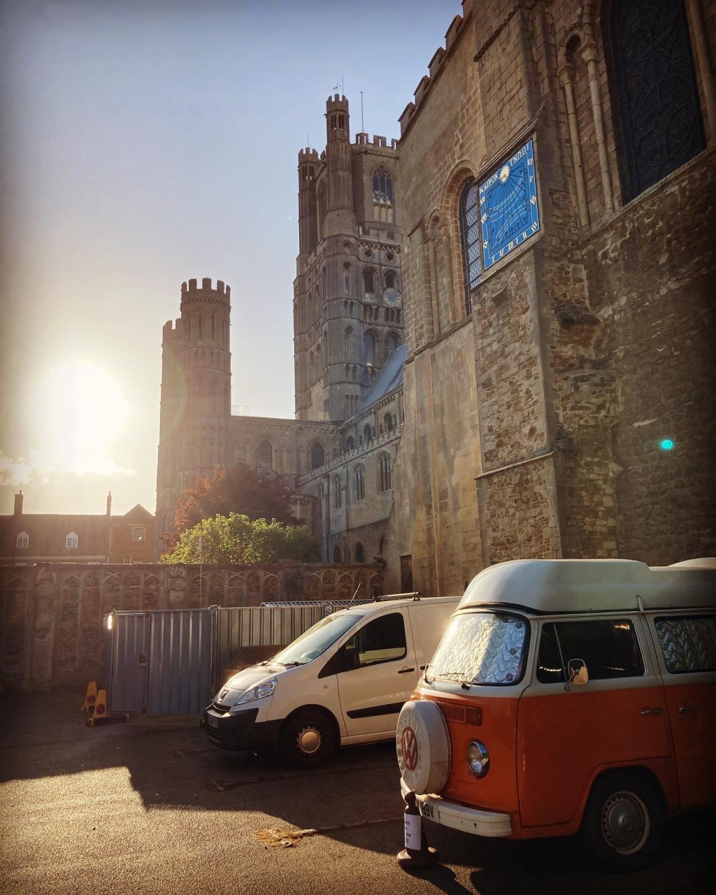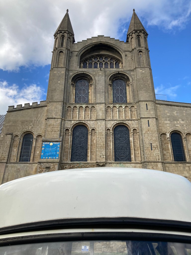 sman’s entrance around the back.  This time I wasn’t blocked by a yellow barrier but by hordes of smartly dressed school children. They seemed to find it very amusing that this old rusty campervan was put-putting it’s way up to the cathedral, taking pictures as I made my way to the parking spot next to the bins.