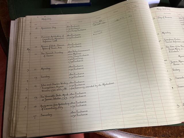Signing the huge register of services witnessed my place in that steady stream of priests who have gone before me. One of my churchwardens will be pleased to know that even St Paul’s Cathedral has a very similar approach to working out the numbers attending worship as we do at the Good Shepherd!