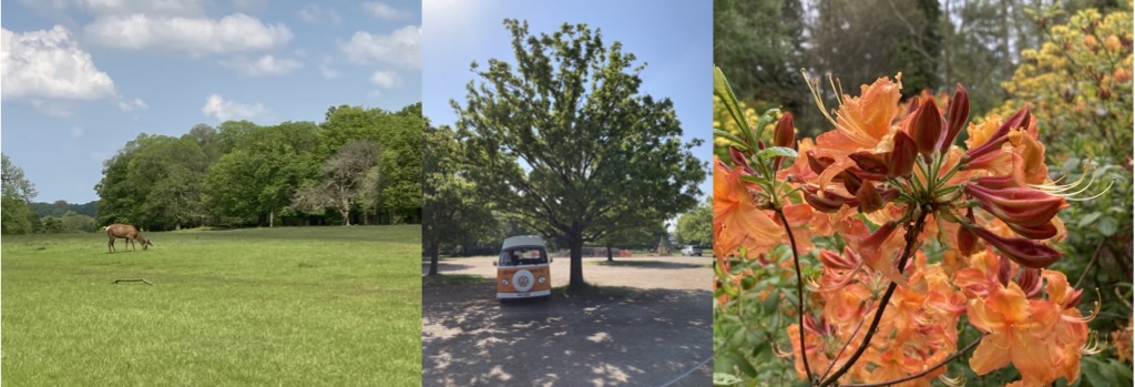I had a lovely evening with Jane and Tim, and goddaughter Sophie. Saturday morning Spotify randomly chose ‘Good times’ by Chic (very appropriate) and I set off to nearby Richmond park. Scattering lycra clad cyclists out of the way as Molly climbed up the hill we made it to the car park – there’s always a risk that if we stop on an incline we might not get going again! The sun was shining, the car park was free and I cooked myself lunch in the van.